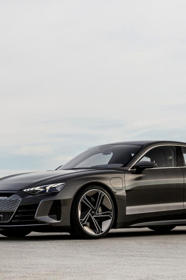 Обои Электрический автомобиль Audi e-tron на фоне голубого неба