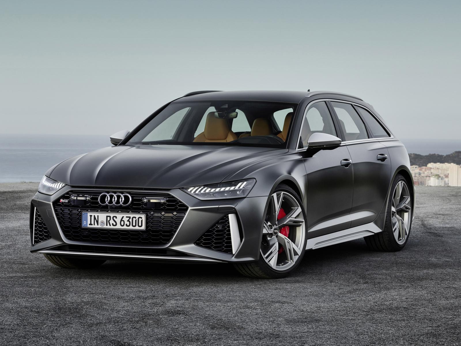 Обои Черный автомобиль Audi RS 6 Avant 2019 года у моря