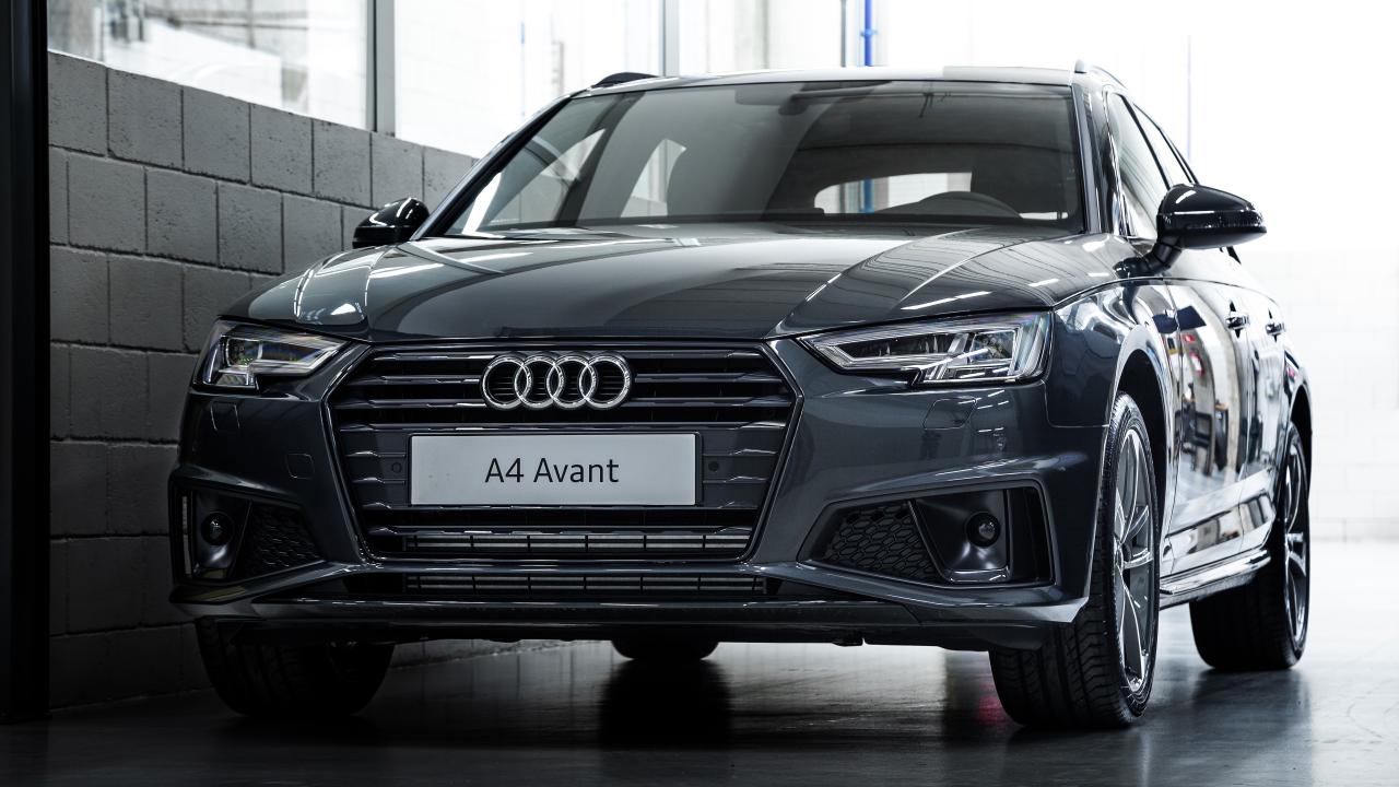 Обои Черный автомобиль Audi A4 Avant 2 TFSI S Line 2019 года