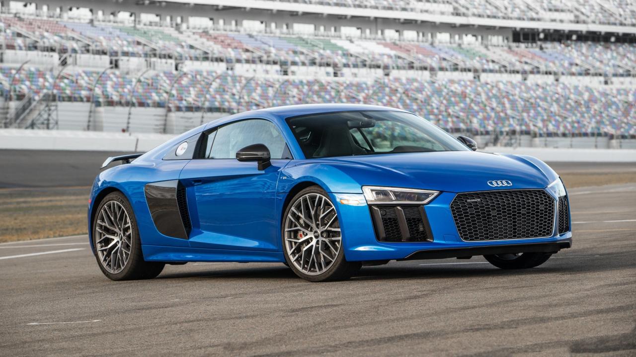 Обои Синий автомобиль Audi R8 V10 на гоночной трассе
