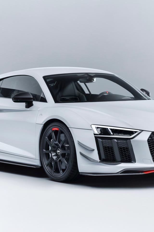 Обои Спортивный автомобиль Audi R8 v10, 2018 на сером фоне