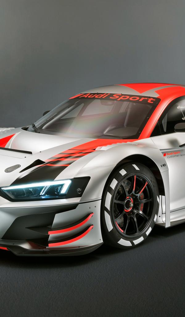 Обои Спортивный автомобиль Audi R8 LMS 2019 года на сером фоне