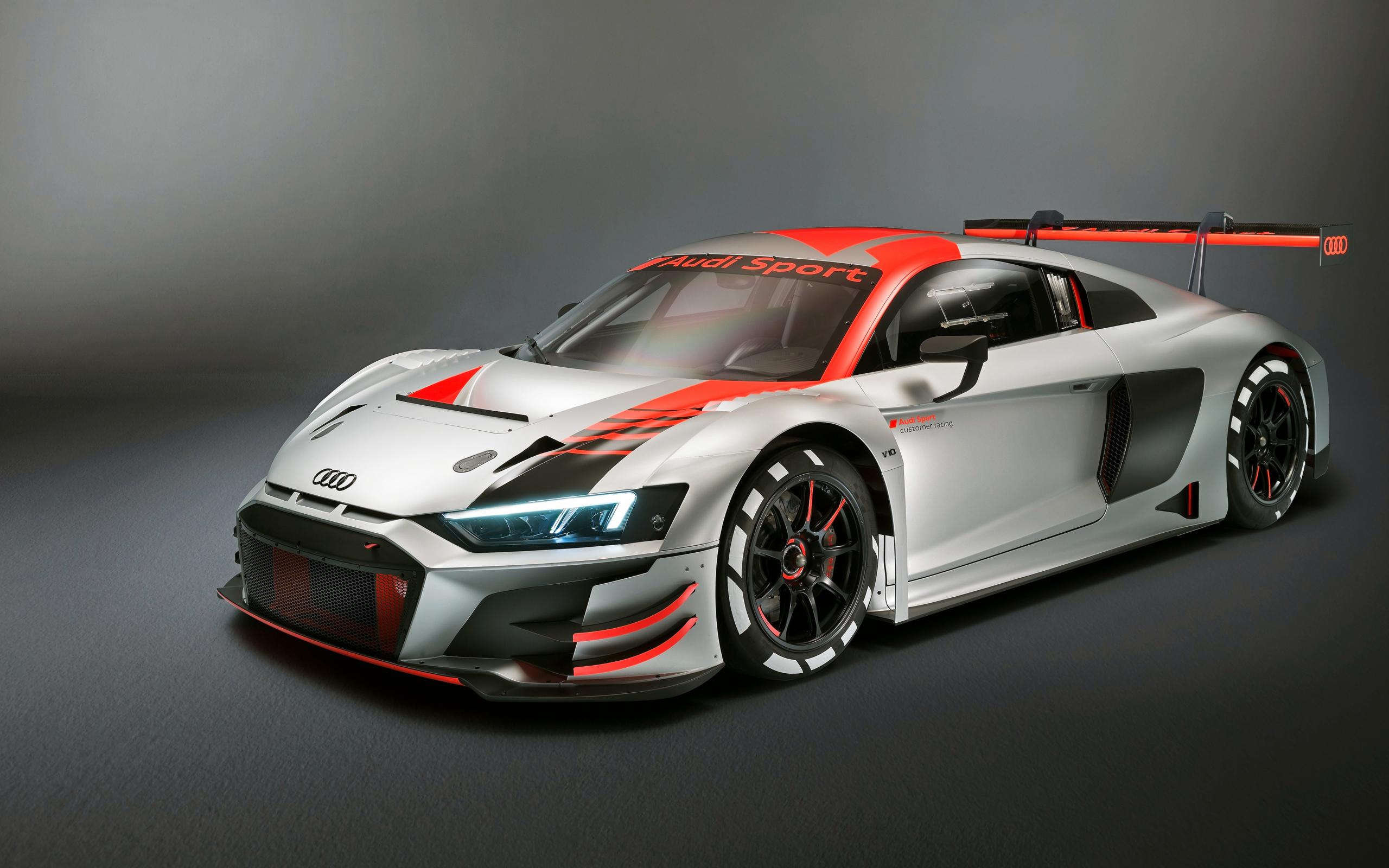 Обои Спортивный автомобиль Audi R8 LMS 2019 года на сером фоне
