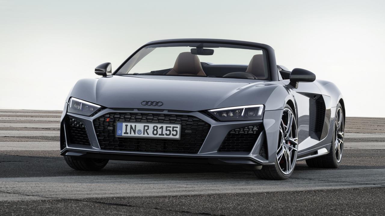 Обои Серебристый кабриолет Audi R8 Spyder, 2019 года
