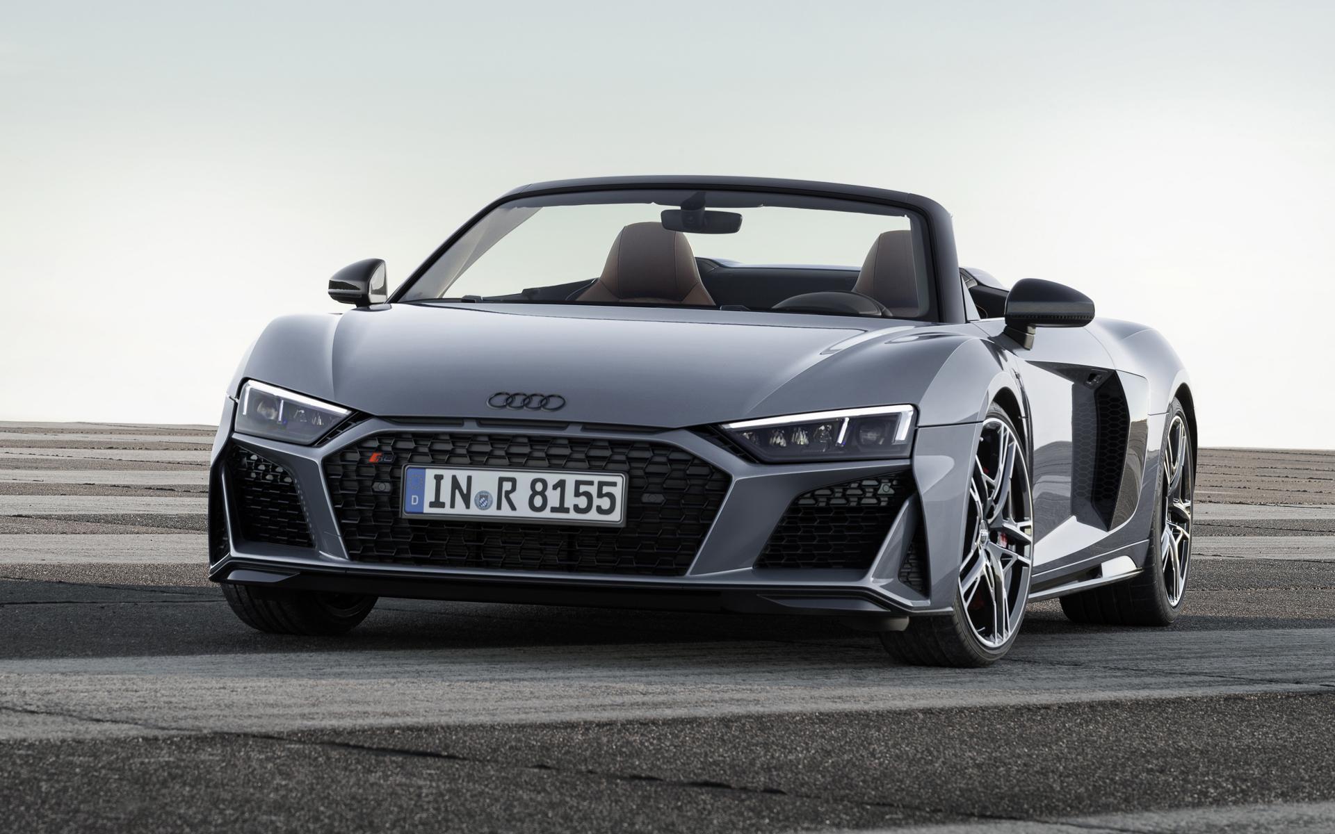 Обои Серебристый кабриолет Audi R8 Spyder, 2019 года