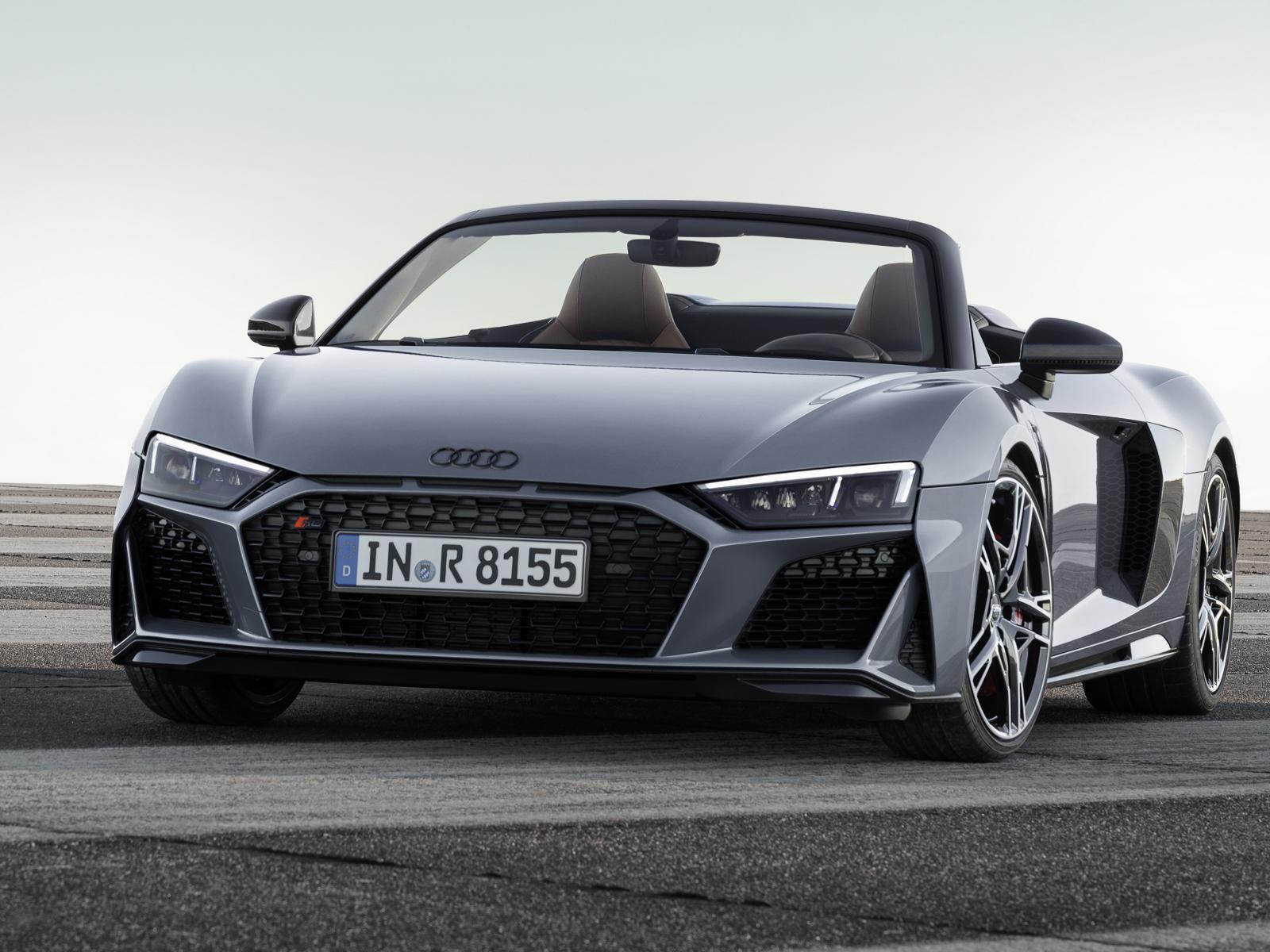 Обои Серебристый кабриолет Audi R8 Spyder, 2019 года