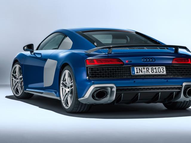 Обои Синий автомобиль Audi R8 Spyder V10 2019 года вид сзади