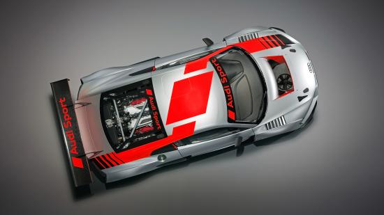Обои Спортивный автомобиль Audi R8 LMS 2019 года на сером фоне вид сверху