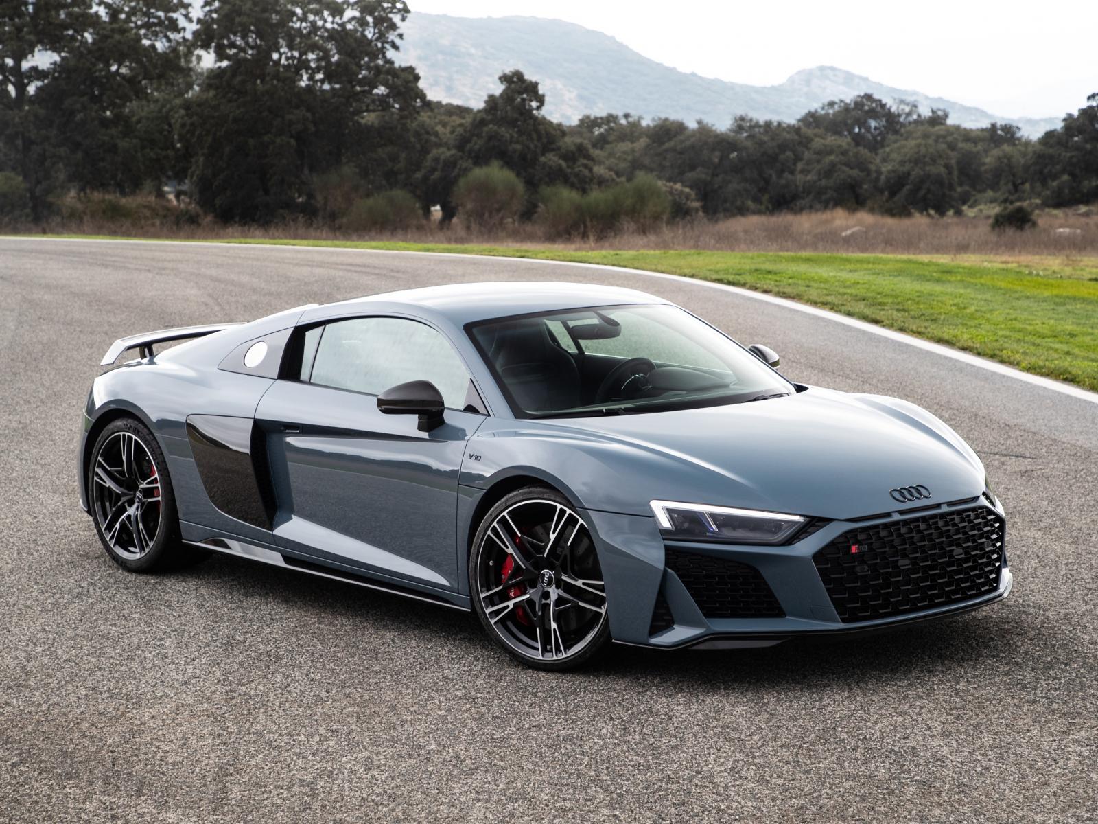 Обои Серебристый автомобиль Audi R8 на асфальте
