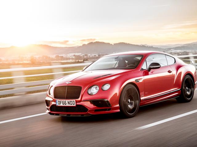 Обои Красный автомобиль Bentley Continental Supersports на трассе
