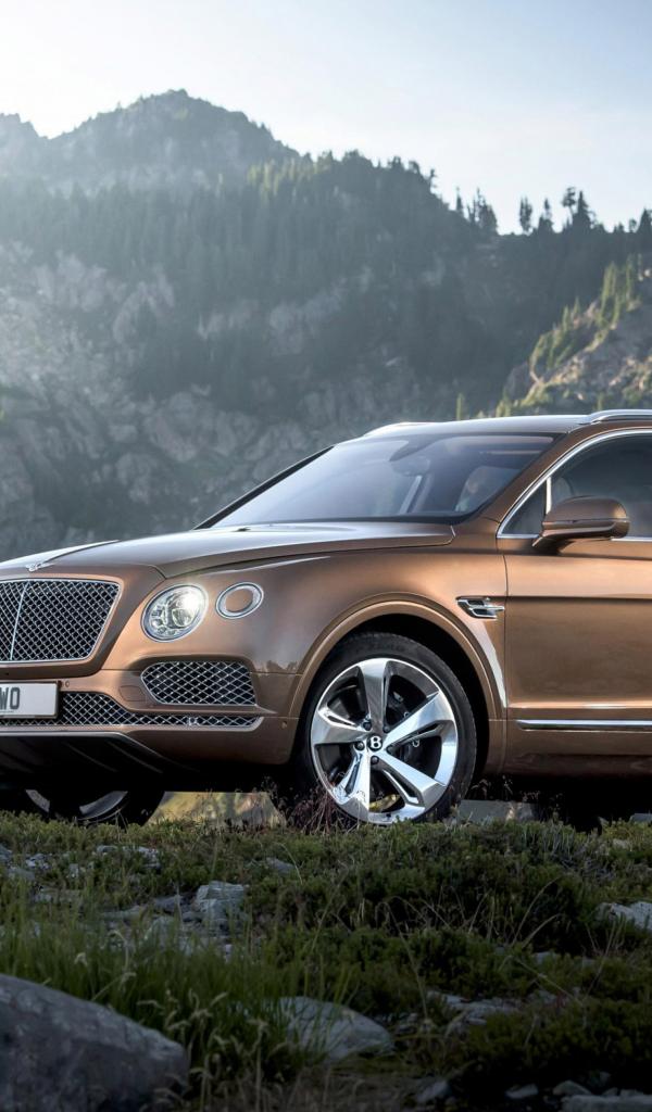 Обои Коричневый кроссовер Bentley Bentayga, 2017 на фоне гор