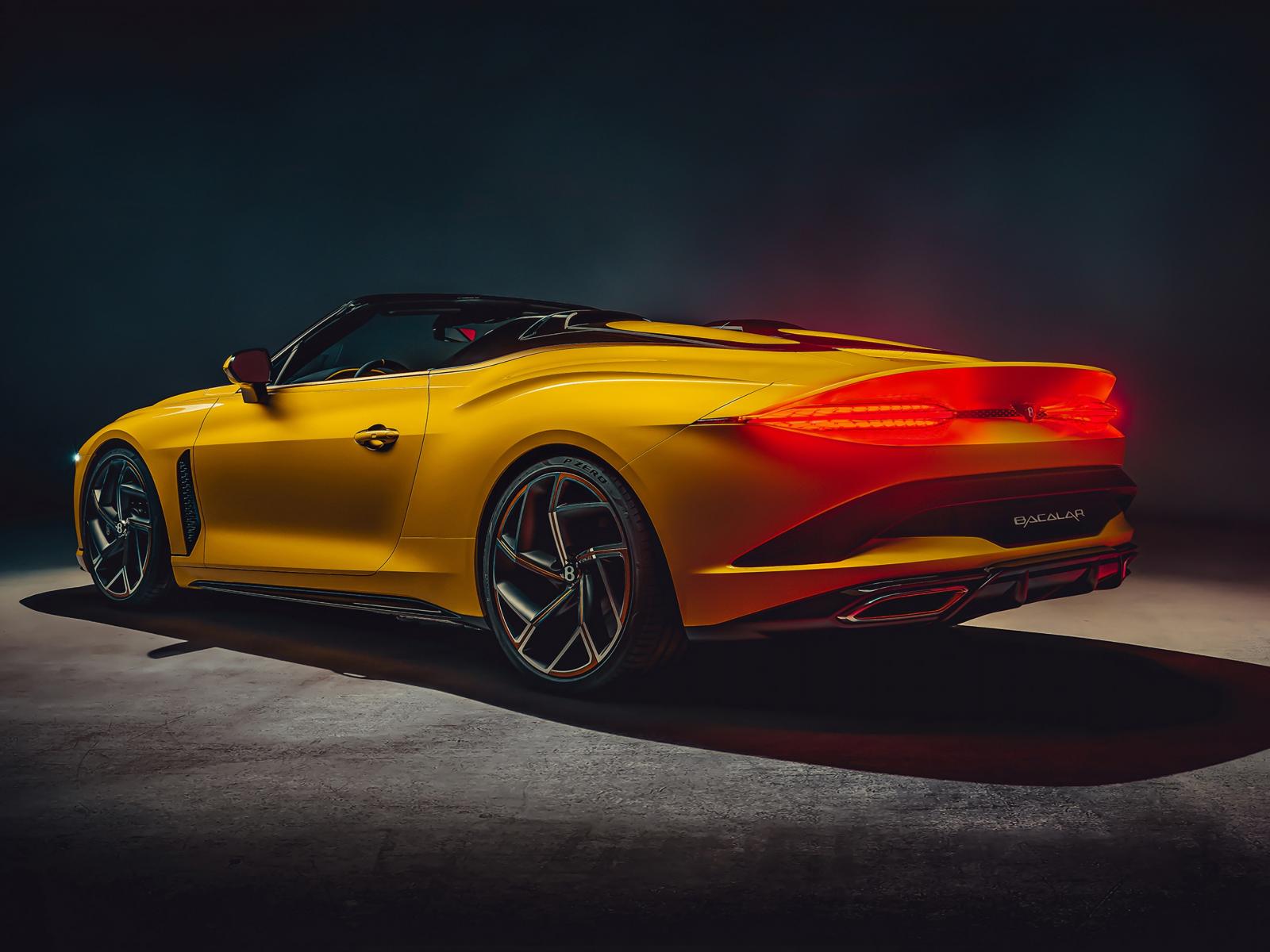 Обои Желтый кабриолет Bentley Mulliner Bacalar 2020 года вид сзади