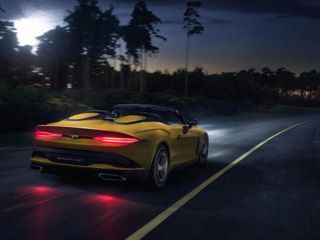 Обои Желтый автомобиль Bentley Mulliner Bacalar 2020 года на ночной трассе