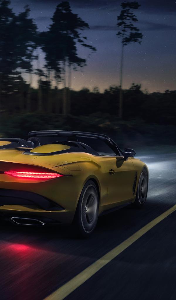 Обои Желтый автомобиль Bentley Mulliner Bacalar 2020 года на ночной трассе