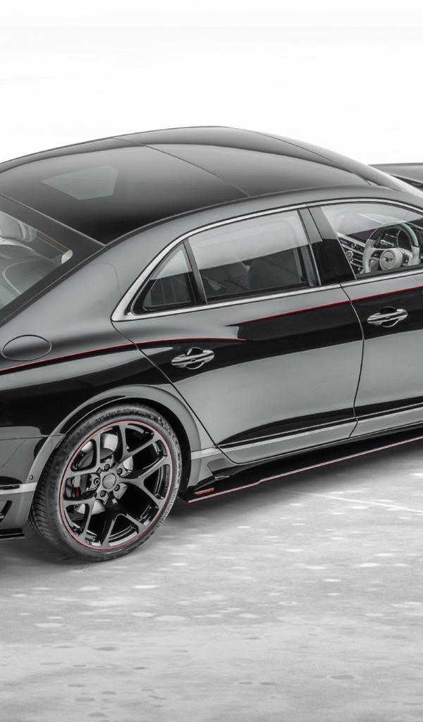 Обои Черный автомобиль Mansory Bentley Flying Spur 2020 года на сером фоне