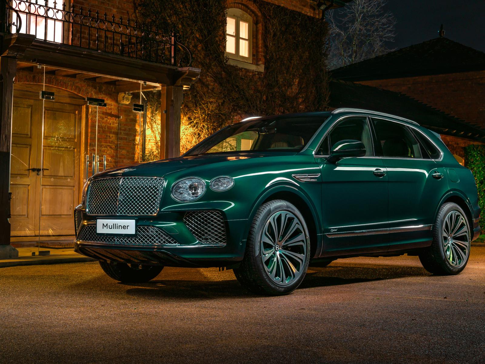 Обои Зеленый автомобиль Bentley Mulliner Bentayga Hybrid 2021 года