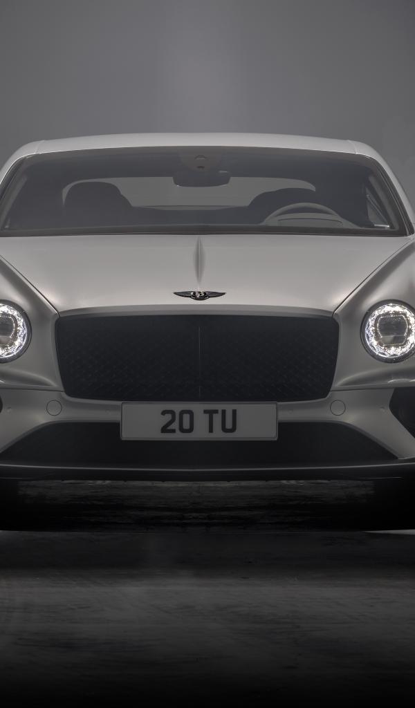 Обои Серебристый автомобиль Bentley Continental GT Speed 2021 года на сером фоне