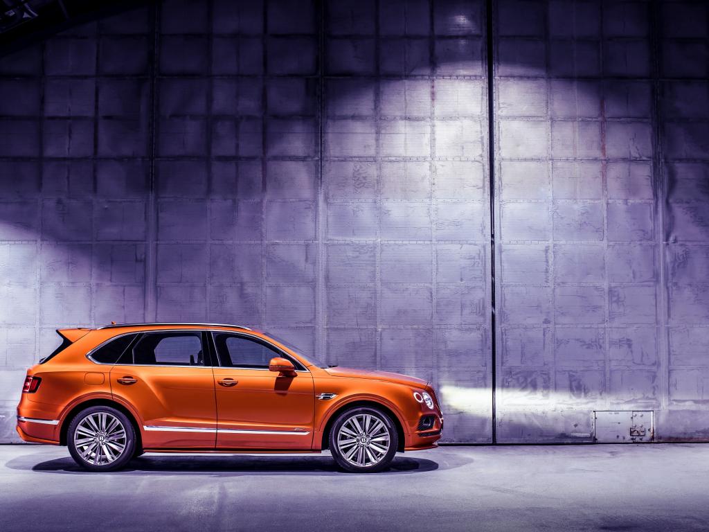 Обои Оранжевый автомобиль Bentley Bentayga вид сбоку