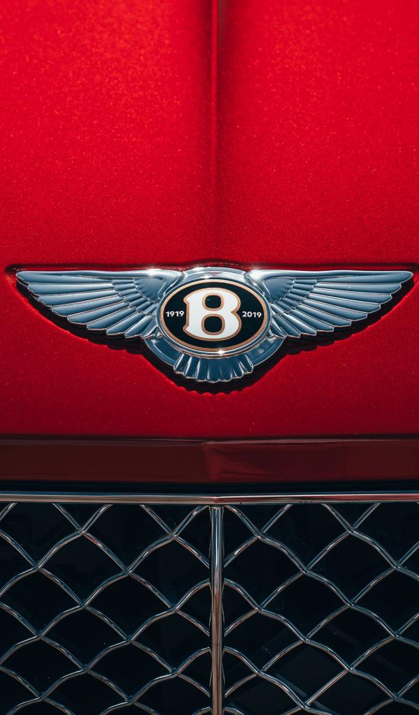 Обои Логотип автомобиля Bentley на красном капоте