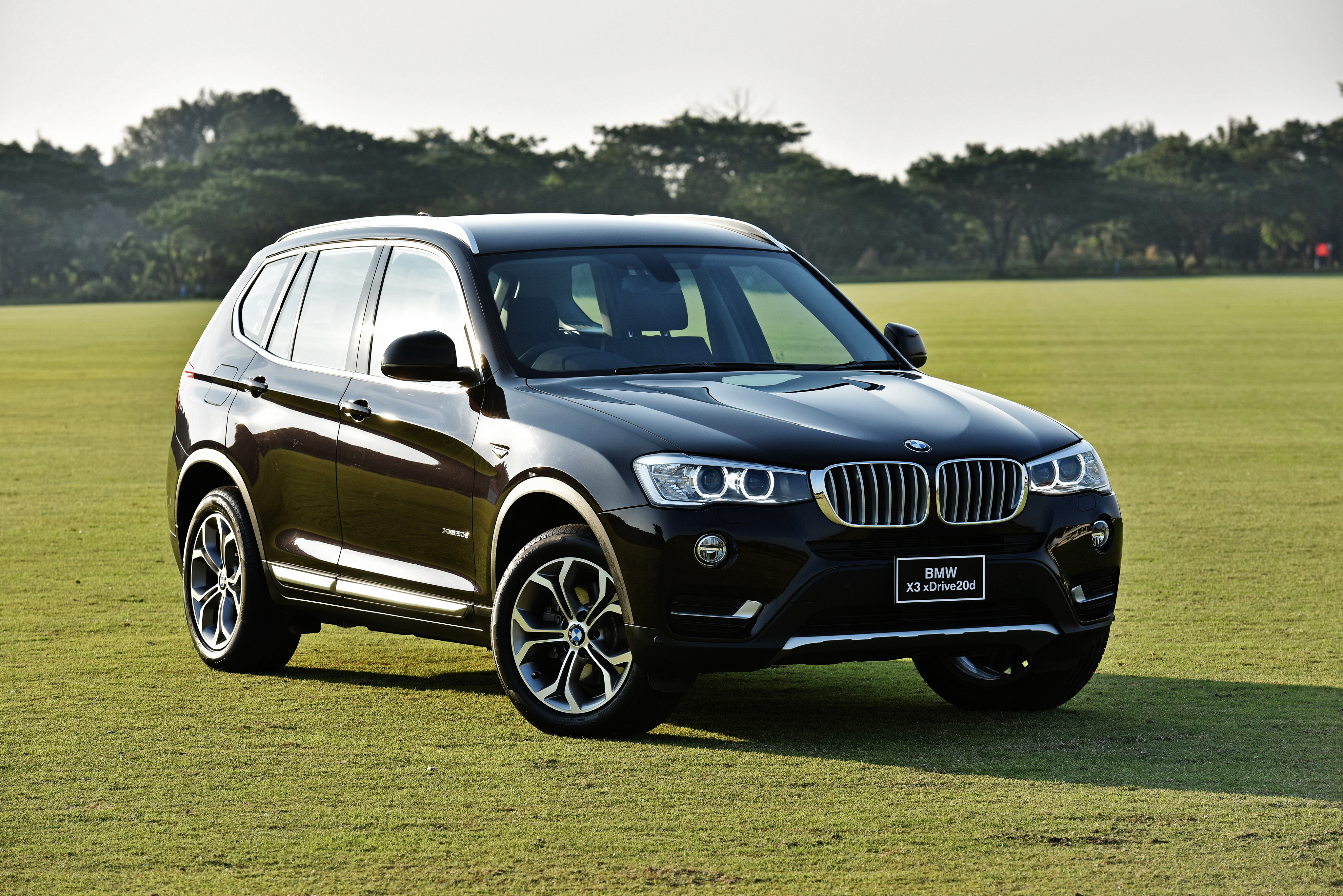 Обои Черный автомобиль BMW X3 на поле для гольфа