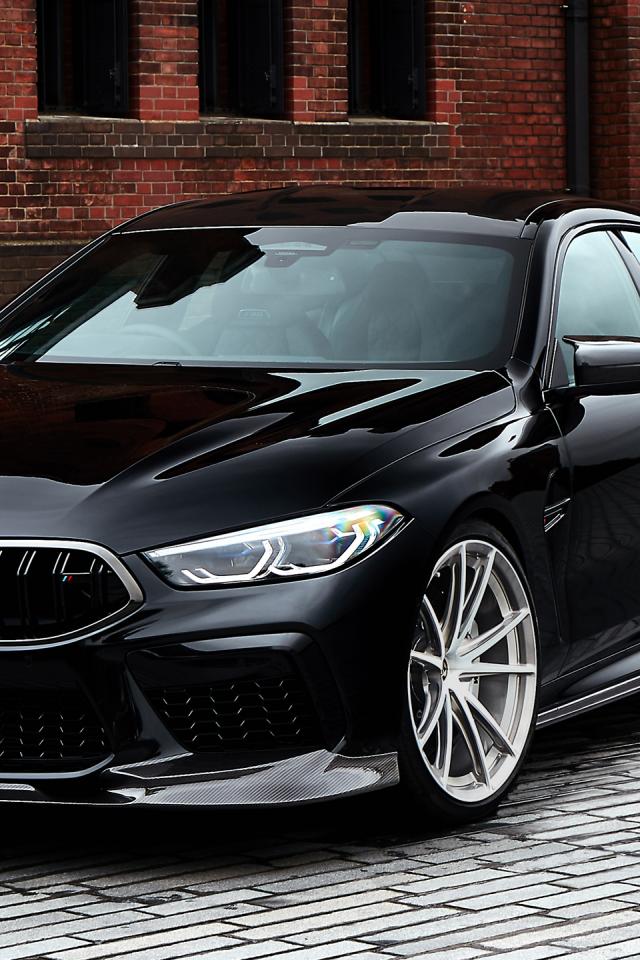 Обои Дорогой черный автомобиль BMW M8 у стены