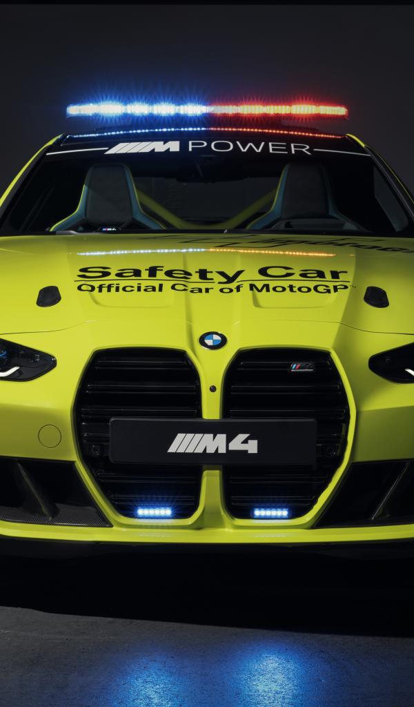 Обои Желтый служебный автомобиль BMW M4 Competition MotoGP Safety Car 2021 года