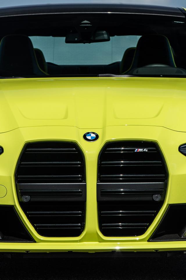 Обои Желтый автомобиль BMW M4 Coupé 2021 года вид спереди