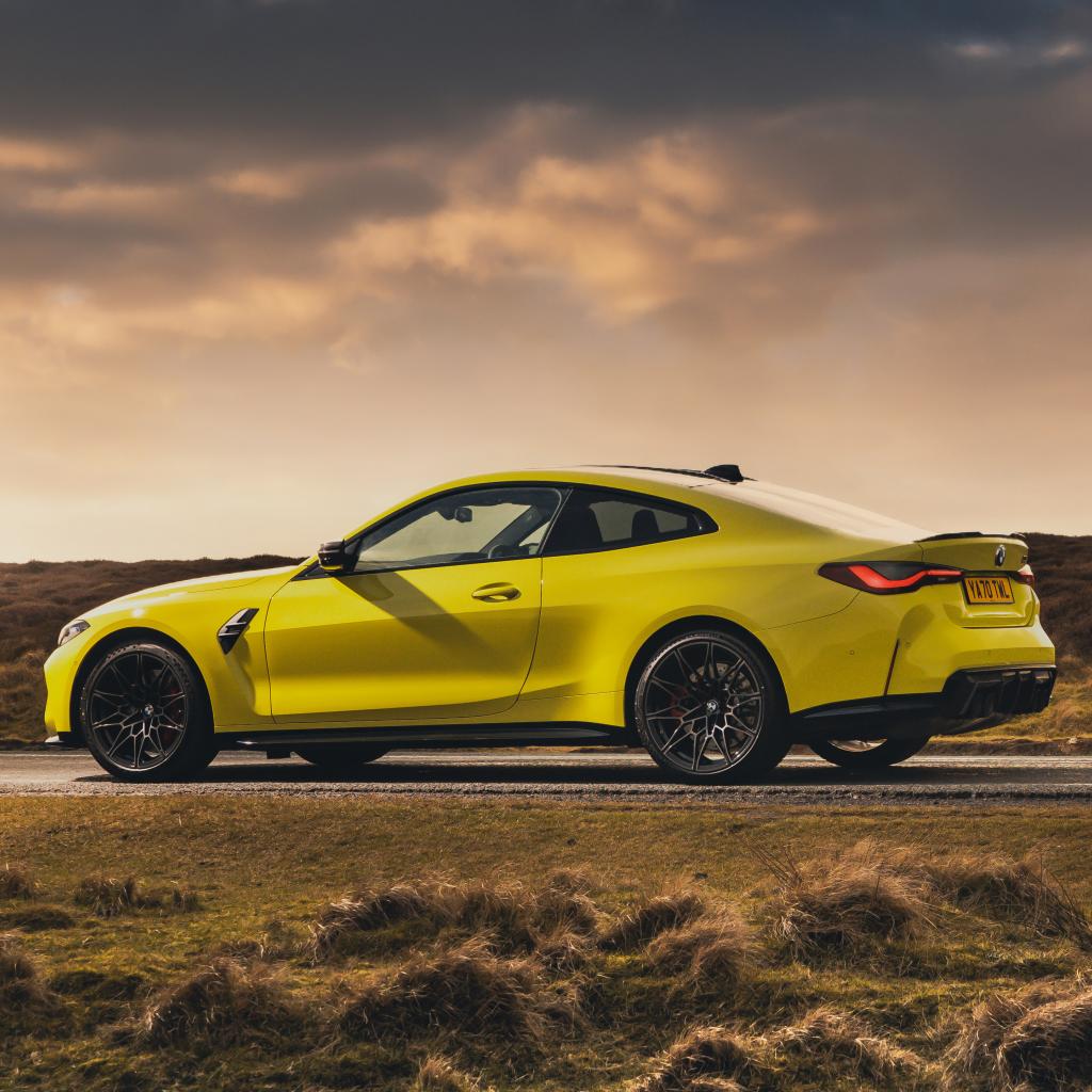 Обои Быстрый желтый автомобиль BMW M4 Competition 2021 года