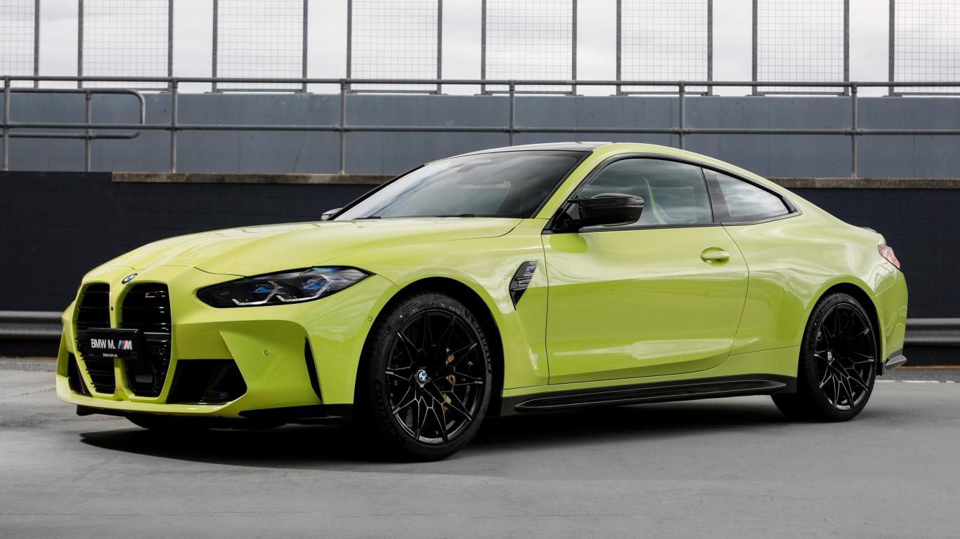 Обои Желтый автомобиль BMW M4 Competition 2021 года