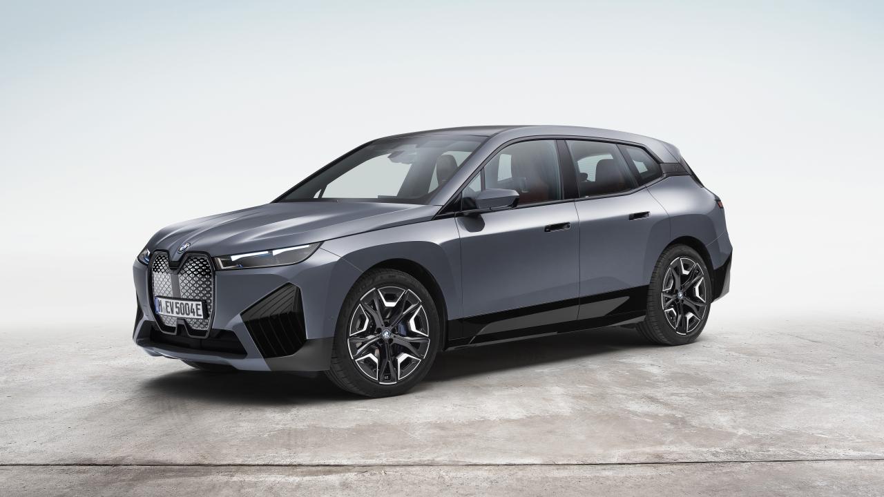 Обои Серебристый внедорожник BMW IX XDrive50 Sport 2021 года на белом фоне