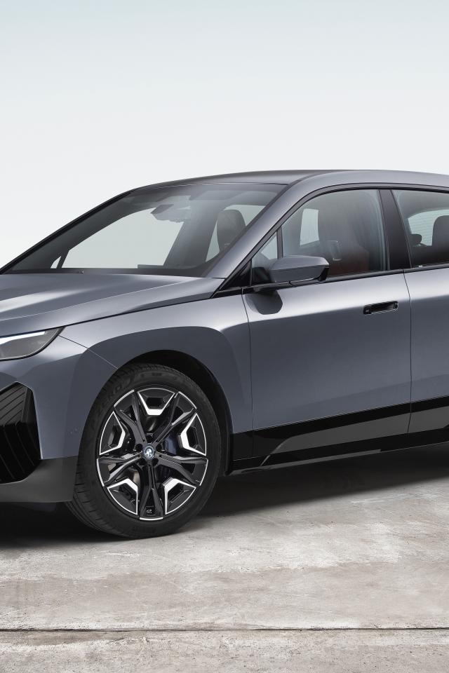 Обои Серебристый внедорожник BMW IX XDrive50 Sport 2021 года на белом фоне
