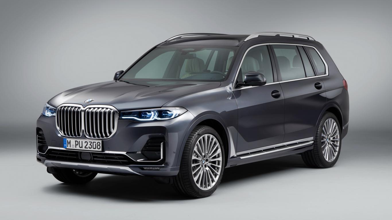Обои Внедорожник BMW X7, 2018 года на сером фоне