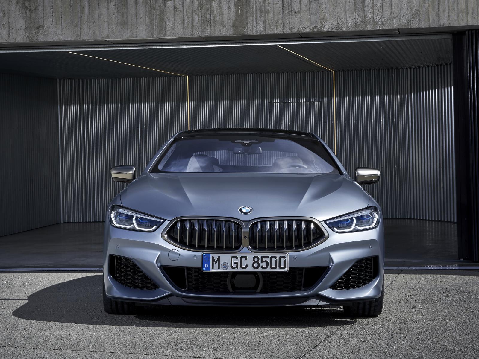 Обои Серебристый автомобиль BMW M850i XDrive, 2019 года в гараже