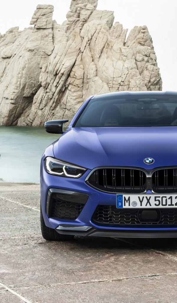 Обои Синий BMW M8 Competition Coupe, 2019 года у воды