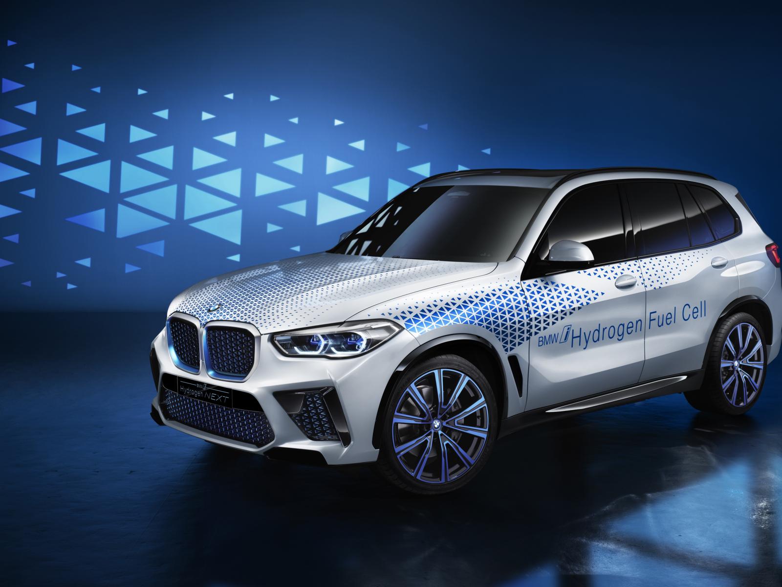Обои Автомобиль BMW I Hydrogen NEXT 2019 года на синем фоне