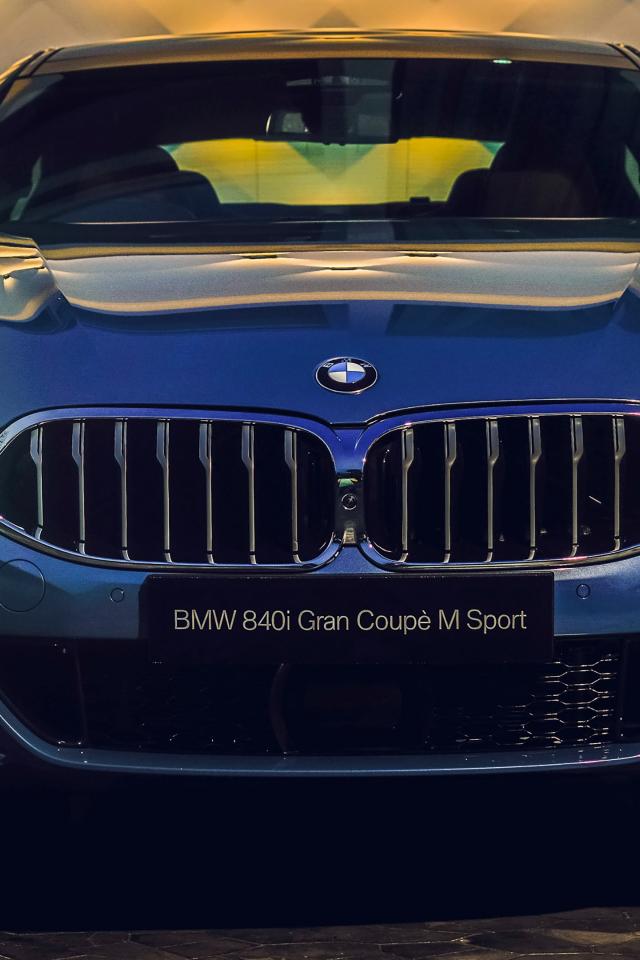 Обои Синий автомобиль BMW 840i M Sport 2020 года крупным планом