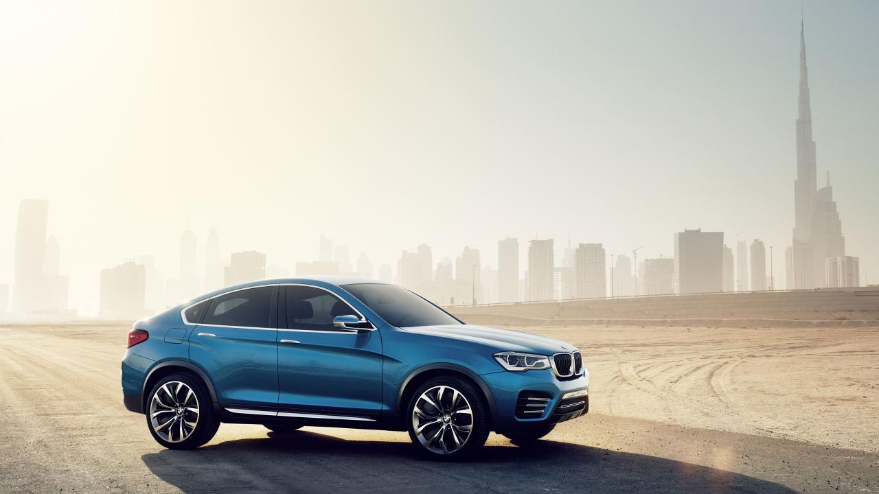Обои Синий BMW X4 кроссовер на городском пейзаже