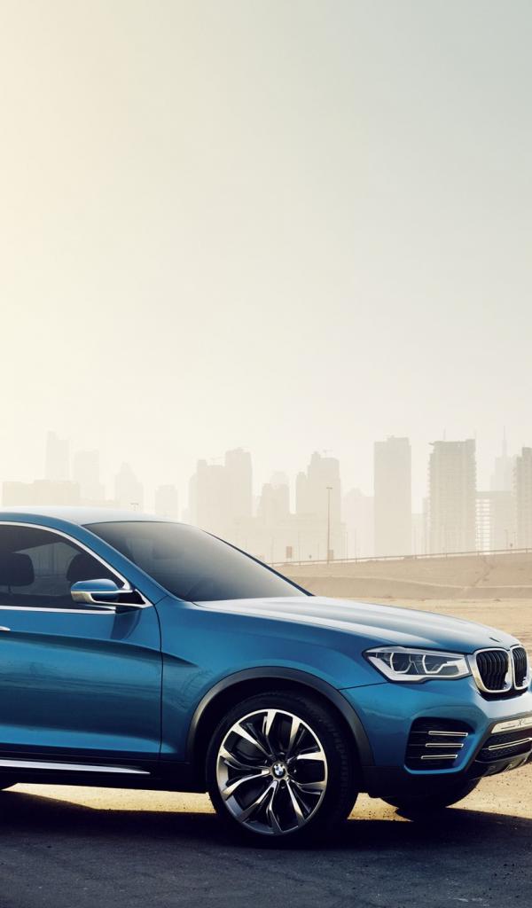 Обои Синий BMW X4 кроссовер на городском пейзаже