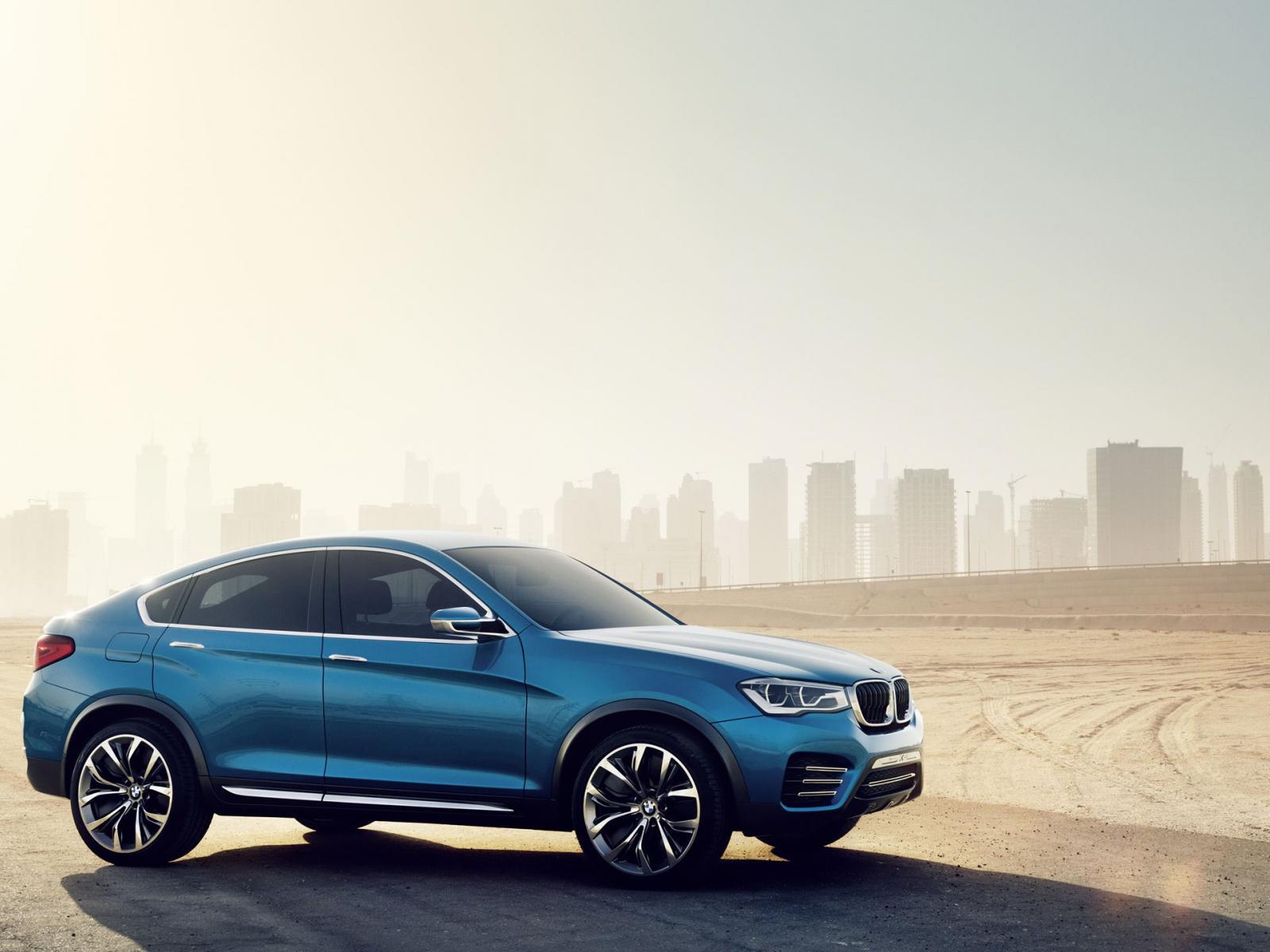 Обои Синий BMW X4 кроссовер на городском пейзаже
