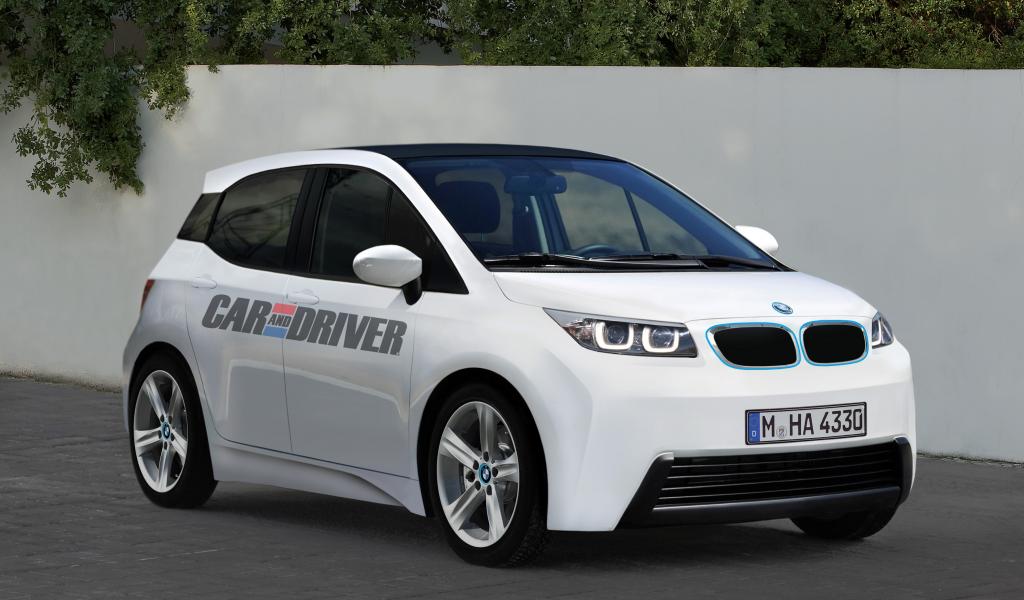 Обои Белый BMW i3 на дороге