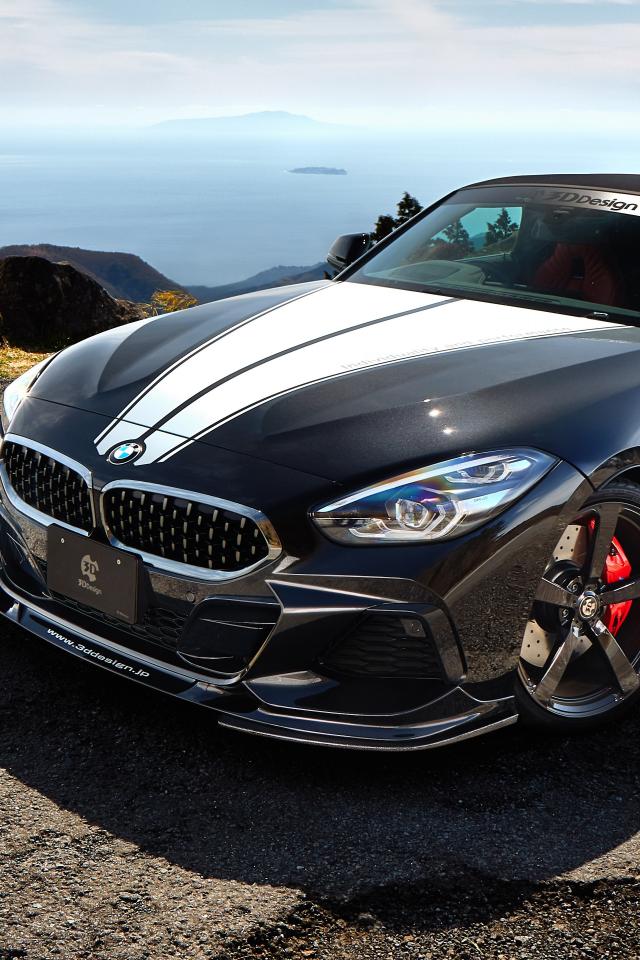 Обои Черный автомобиль BMW Z4 SDrive20i M Sport в лучах солнца