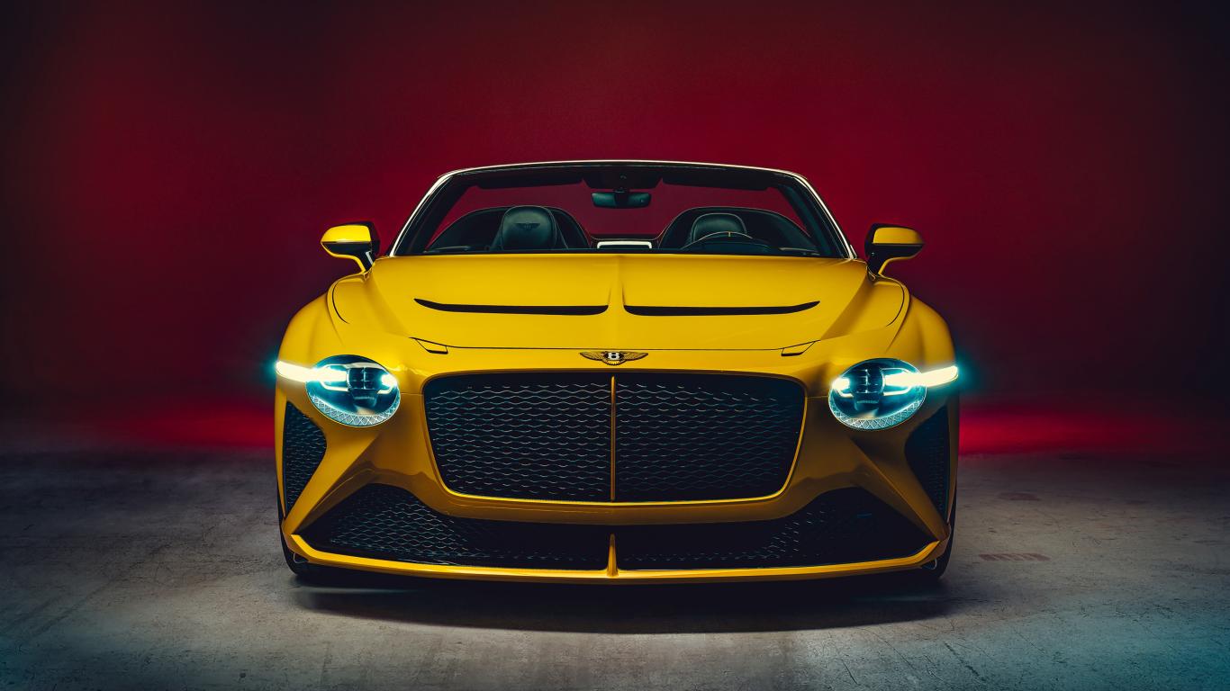 Обои Желтый автомобиль Bentley Mulliner Bacalar 2020 года вид спереди