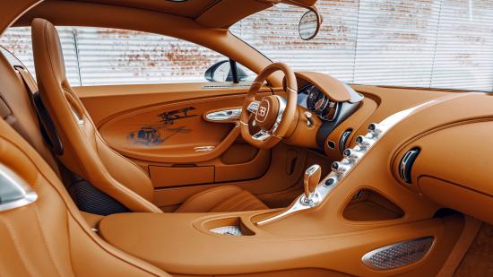 Обои Коричневый кожаный салон автомобиля Bugatti Chiron