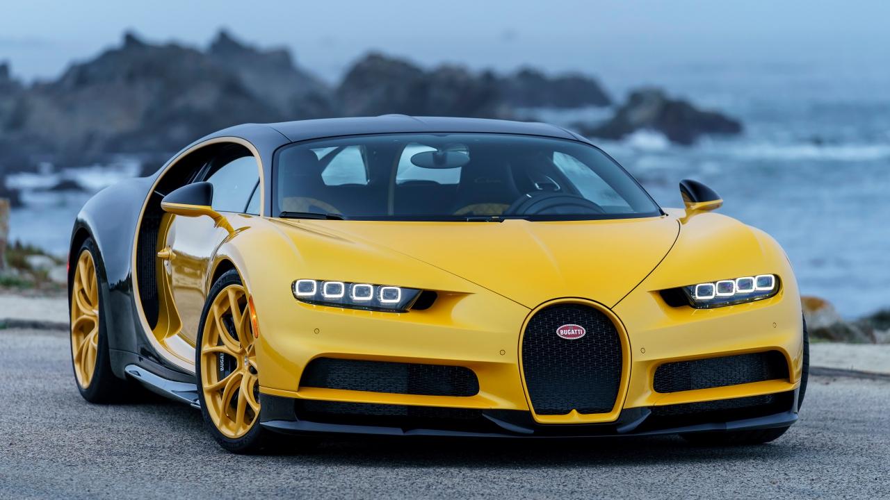 Обои Желтый спортивный автомобиль Bugatti Chiron, 2018