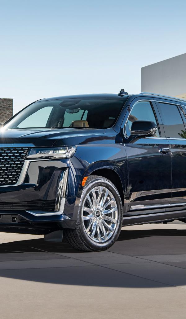 Обои Большой дорогой Cadillac Escalade, 2021 года у дома