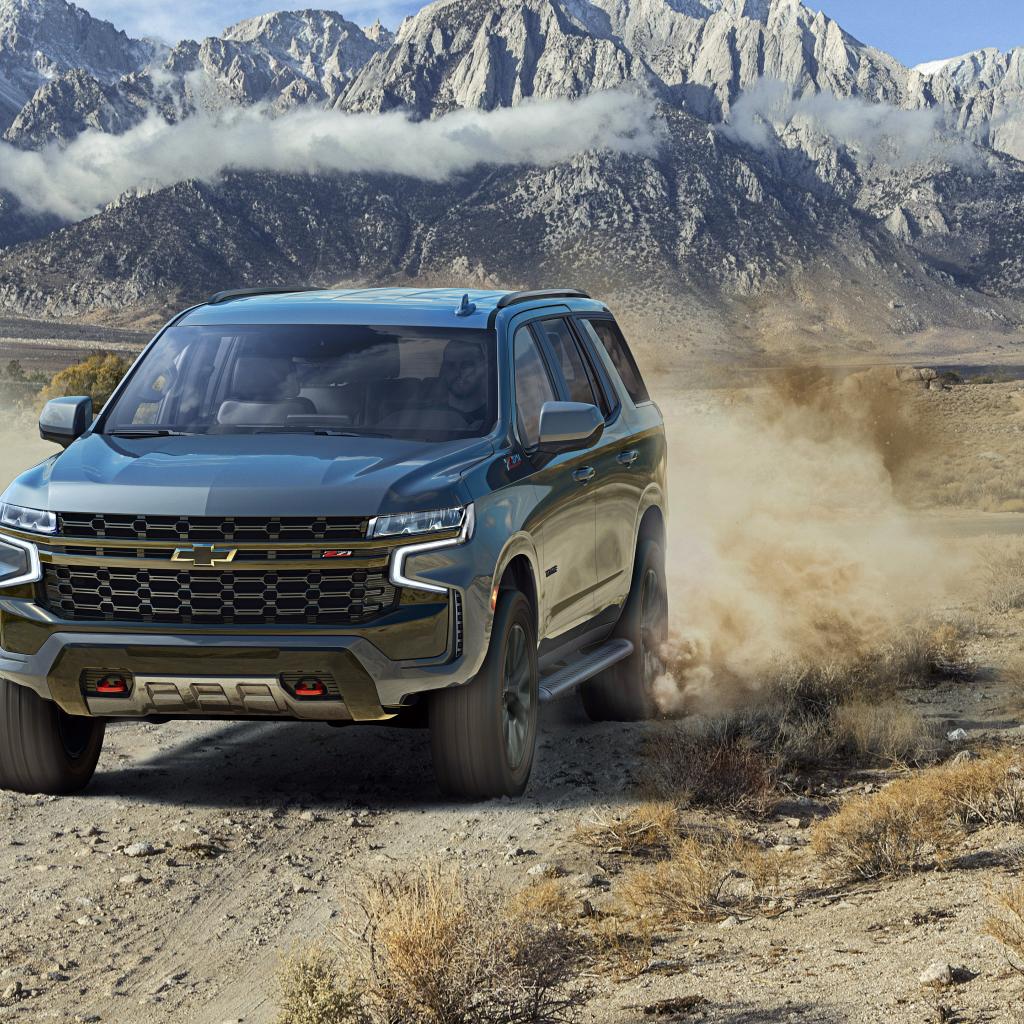 Обои Черный внедорожник Chevrolet Tahoe Z71, 2021 года в горах