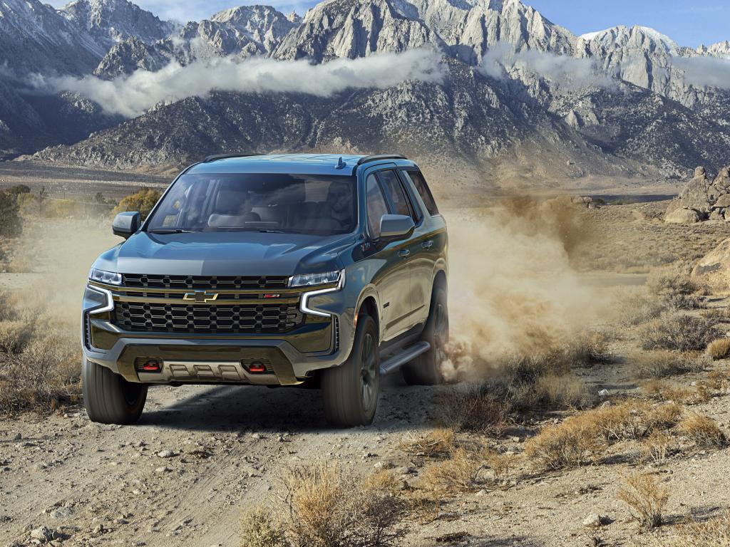 Обои Черный внедорожник Chevrolet Tahoe Z71, 2021 года в горах