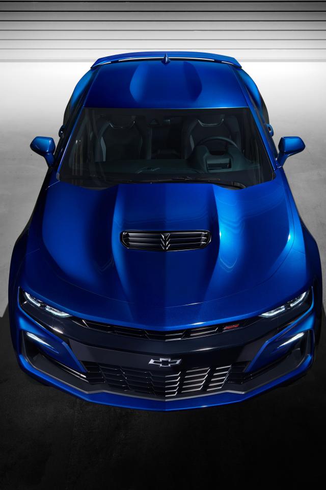 Обои Синий автомобиль Chevrolet Camaro SS, 2018 года