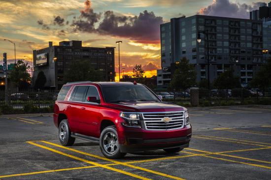 Обои Красный внедорожник Chevrolet Tahoe на парковке