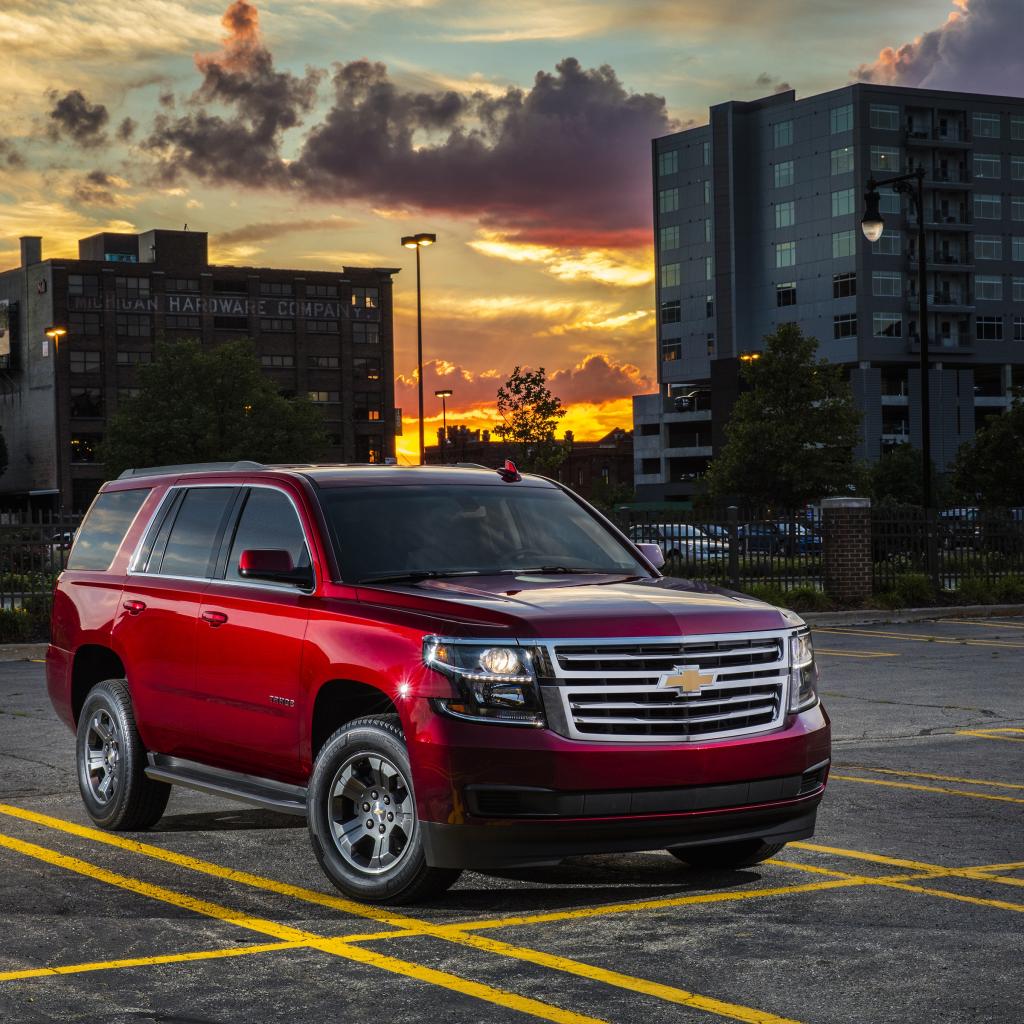 Обои Красный внедорожник Chevrolet Tahoe на парковке